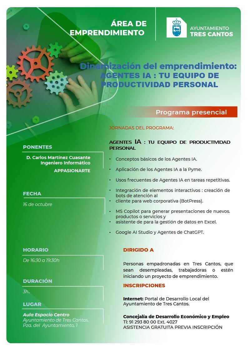 Dirigido a personas empadronadas en Tres Cantos que sean desempleadas, trabajadoras o estén iniciando un proyecto de emprendimiento