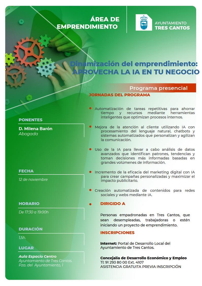 - Automatización de tareas repetitivas para ahorrar tiempo y recursos mediante herramientas inteligentes que optimizan procesos internos. - Mejora de la atención al cliente utilizando IA con procesamiento del lenguaje natural, chatbots y sistemas automatizados que personalizan y agilizan la comunicación. - Uso de la IA para llevar a cabo análisis de datos avanzados que identifican patrones, tendencias y tomas decisiones más informadas basadas en grandes volúmenes de información. - Incremento de la eficacia del marketing digital con IA para crear campañas personalizadas y maximizar el impacto publicitario. - Creación automatizada de contenidos para redes sociales y webs mediante IA.
