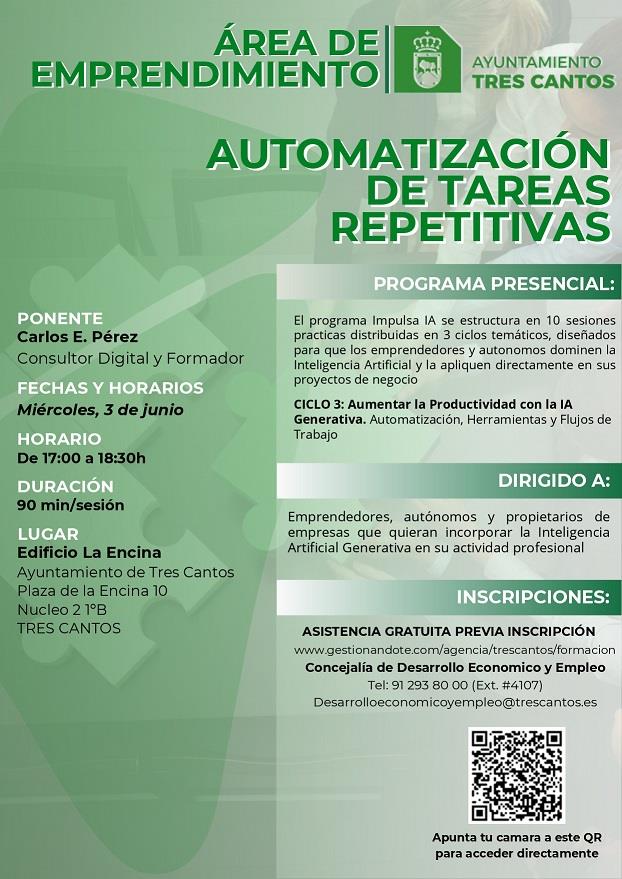 Esta jornada corresponde al CICLO 3: AUMENTAR LA PRODUCTIVIDAD CON LA IA GENERATIVA. AUTOMATIZACIÓN, HERRAMIENTAS Y FLUJOS DE TRABAJO.