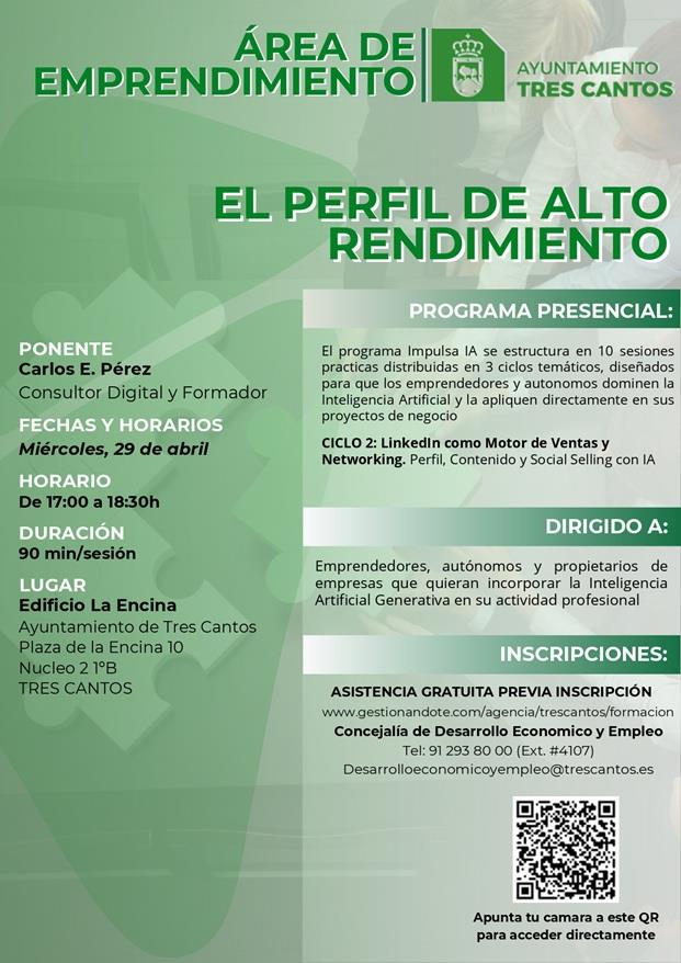 El programa Impulsa IA se estructura en 10 sesiones prácticas distribuidos en 3 ciclos temáticos, diseñados para que los emprendedores y autónomos dominen la Inteligencia Artificial y la apliquen directamente en sus proyectos de negocio. Esta jornada corresponde al CICLO 2: LINKEDIN COMO MOTOR DE VENTAS Y NETWORKING. Perfil, Contenido y Social Selling con IA.