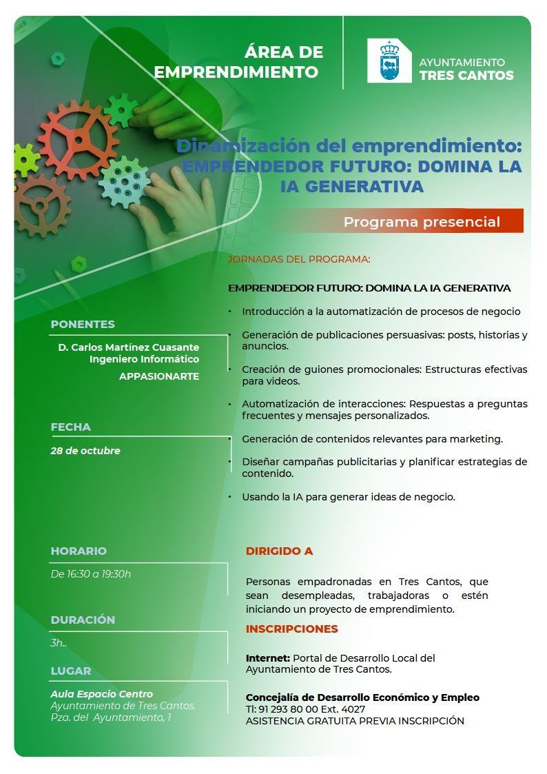 Dirigida a personas empadronadas en Tres Cantos, que sean: desempleadas, trabajadoras o estén iniciando un proyecto de emprendimiento