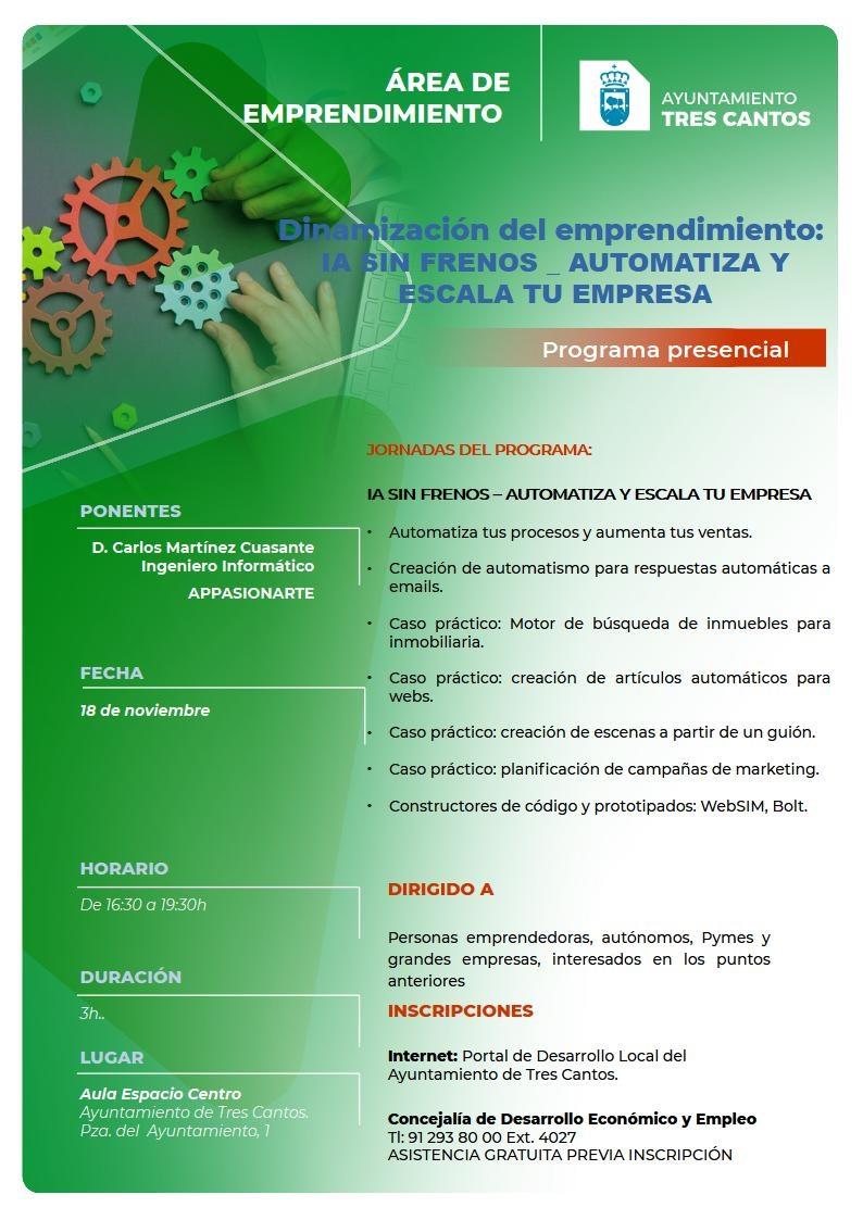 - Automatiza tus procesos y aumenta tus ventas. - Creación de automatismos para respuestas automáticas a emails. - Caso práctico: Motor de búsqueda de inmuebles para inmobiliaria. - Caso práctico: Creación de artículos automáticos para webs. - Caso práctico: Creación de escenas a partir de un guión. - Caso práctico: Planificación de campañas de marketing. - Constructores de código y prototipados: WebSIM, Bolt.
