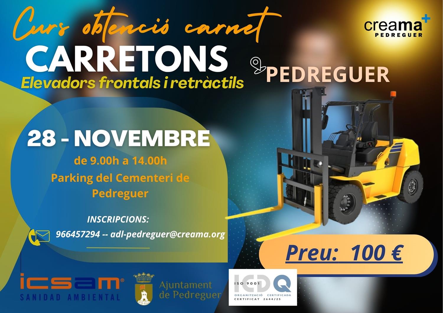 CURSO OBTENCIÓN CARNET DE CARRETILLAS ELEVADORAS AUTOMOTORAS (FRONTAL Y RETRACTIL) - PEDREGUER